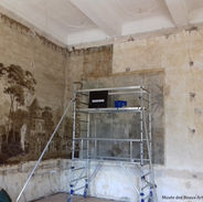 La restauration des décors de papier peut s'effectuer sur site ou bien, après dépose, en atelier.